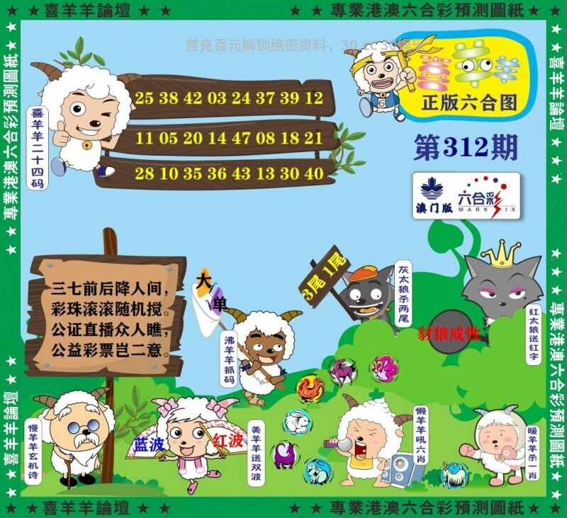 | 312期平特:☃️【羊羊羊】☃️ 312期二连:【羊蛇】【猪龙】 312期三连:【羊蛇猴】【猪龙鼠】 |